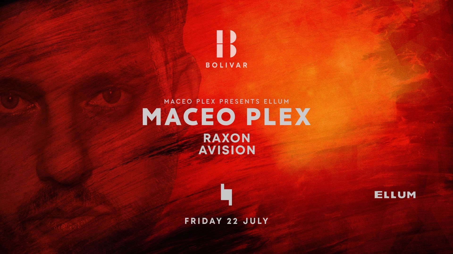 Παρασκευή 22 Ιουλίου, το Bolivar υποδέχεται τον Αμερικανό ηγέτη της electro σκηνής MACEO PLEX να παρουσιάζει μια βραδιά ELLUM . Μαζί του oι Raxon και Avision.