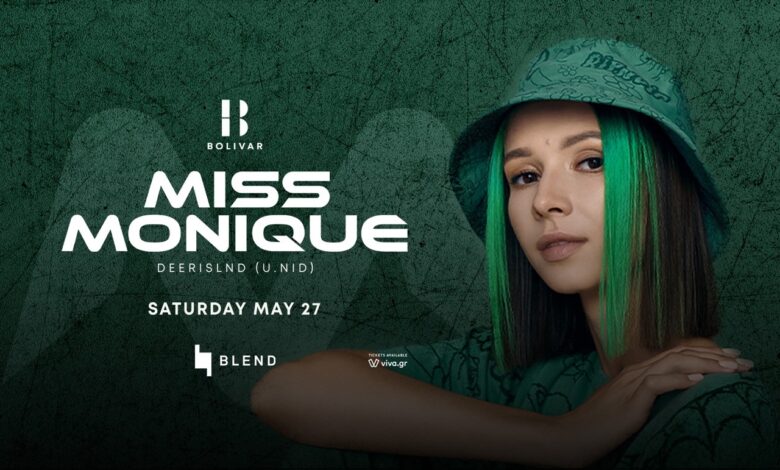 Σάββατο 27 Μαΐου Bolivar και Blend παρουσιάζουν την ραγδαία ανερχόμενη, και πλέον περιζήτητη star της dance electronica Miss Monique. Μαζί της Deerislnd ( u.nid ) Steph & Rezo