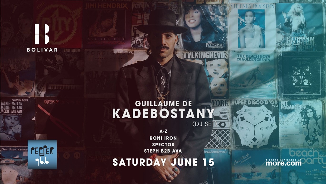 To Σάββατο 15 Ιουνίου ο διάσημος καλλιτέχνης για το εξαιρετικό του γούστο και την αστείρευτη ενέργειά του, Guillaume de Kadebostany έρχεται στο Bolivar Beach Club για ένα μοναδικό dj Set! O ιδρυτής του δημοφιλούς και ιδιαίτερα αγαπημένου Group Kadebostany, το οποίο έχουμε γνωρίσει μέσα από τις πολλές επιτυχίες του όπως «Castle in the snow», «Save me», «Mind if I stay», «Walking with a ghost» και του ολόφρεσκου «Easy» μεταξύ άλλων, καταφθάνει στην Αθηναϊκή Ριβιέρα να μας παρουσιάσει τη μουσική μέσα από το δικό του πρίσμα. Μαζί του οι (A-Z) Dj Spector, Roni Iron και Steph b2b AVA.