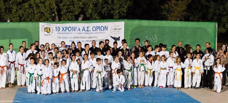 Τα 10 χρόνια από την ίδρυση του Α.Σ. ΩΡΙΩΝ γιόρτασαν γνωστοί και φίλοι , το Σάββατο 23/9/17 , στο αμφιθέατρο “Μαίρη Αρώνη” στον Άλιμο. Οι Δασκάλες Αγγελοπούλου Κική και Τσουράπη Βαρβάρα και οι Δάσκαλοι Τσουράπης Βασίλης και Φωκός Σωτήρης διοργάνωσαν αθλητικές επιδείξεις στις οποίες έλαβαν μέρος όλοι οι αθλητές του Συλλόγου , μικροί και μεγάλοι. Το πρόγραμμα άνοιξε με ένα σύντομο χαιρετισμό η Προέδρος Μανούσου Ευγενία και την παρουσίαση με σύνθημα “ο αθλητισμός είναι για όλους” έκανε ο γιατρός του Συλλόγου Δριμάλας Νίκος. Πλήθος κόσμου και χαμόγελα γέμισε το αμφιθέατρο από γονείς , φίλους , προπονητές και δασκάλους , παράγοντες του αθλητισμού , δημοτικούς συμβούλους δίνοντας το μεγαλύτερο δυνατό χειροκρότημα , οι οποίοι απόλαυσαν ένα θέαμα των Κορεάτικων Πολεμικών Τεχνών Tae Kwon Do (Ολυμπιακό Άθλημα) και Hwal Moo Do (Μαχητική Τέχνη).