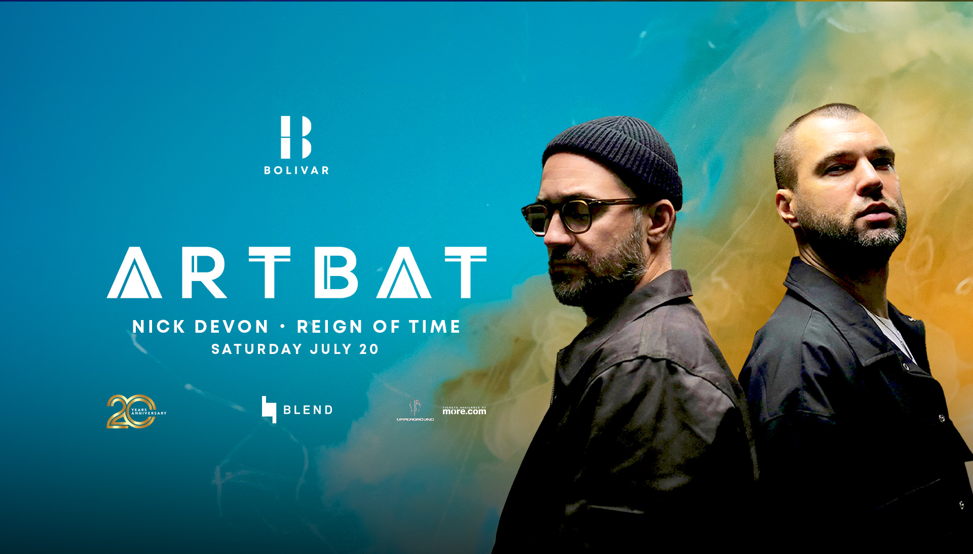 Το Σάββατο 20 Ιουλίου Bolivar και Blend παρουσιάζουν τους Artbat, το πιο αναγνωρισμένο δίδυμο της ηλεκτρονικής μουσικής. Με καταγωγή από το Κίεβο, ο Artur και Batish έχουν φέρει επανάσταση στον κόσμο της melodic techno, συνδυάζοντας με μοναδικό τρόπο συναισθήματα και ρυθμούς.