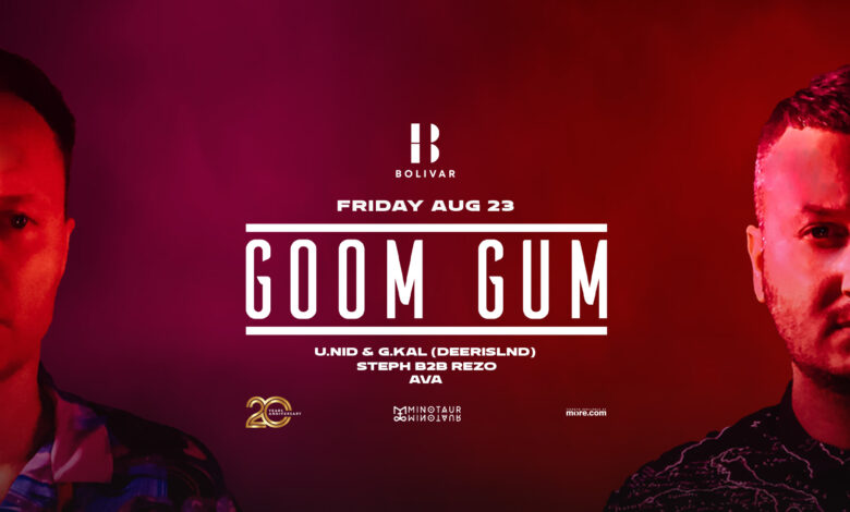 Την Παρασκευή 23 Αυγούστου έρχεται το δυναμικό δίδυμο από την Αγία Πετρούπολη, Goom Gum στο Bolivar Beach Club για μια βραδιά γεμάτη χορό και συναίσθημα. Ο Αλεξέι Κούπιν και Ίλια Κουβάεφ έχουν γίνει ιδιαίτερα δημοφιλής για τους μοναδικούς συνδυασμούς μελωδικής techno με indie beats, καθώς επίσης και τη δημιουργία χορευτικών κομματιών που προκαλούν συγκίνηση στο dancefloor.