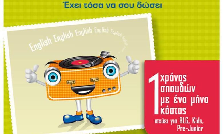 Επωφεληθείτε από τη νέα μας προσφορά: 1 χρόνος σπουδών με 1 μήνα κόστος για παιδιά ηλικίας 4-6 χρονών (επίπεδα BLG, Kids και Pre-Junior).