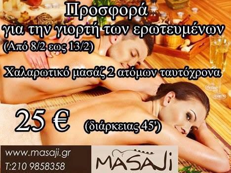Αγίου Βαλεντίνου στο Masaji Προσφορά Μασάζ χαλαρωτικό για ζευγάρια 25€ σε κοινό δωμάτιο με αιθέρια έλαια !!!