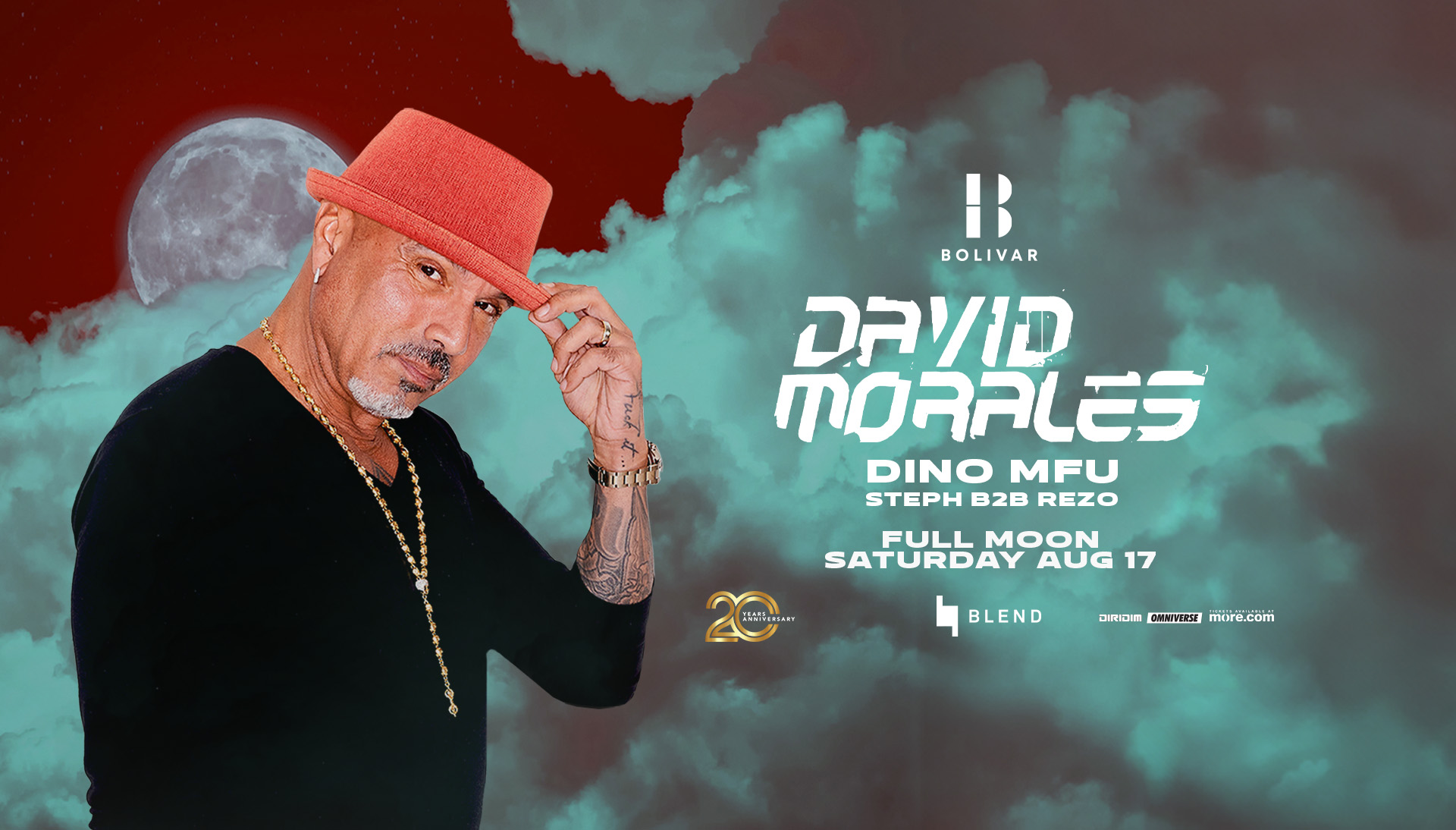 Το Σάββατο 17 Αυγούστου, το Bolivar Beach Club διοργανώνει μια θρυλική βραδιά house μουσικής φέρνοντας στα decks τον ανεπανάληπτο David Morales. Θεωρούμενος ευρέως ως ένας από τους πιο διάσημους house DJs όλων των εποχών, ο Morales επιστρέφει στην Αθήνα για ένα marathon DJ set κάτω από το μαγευτικό φως της πανσελήνου.