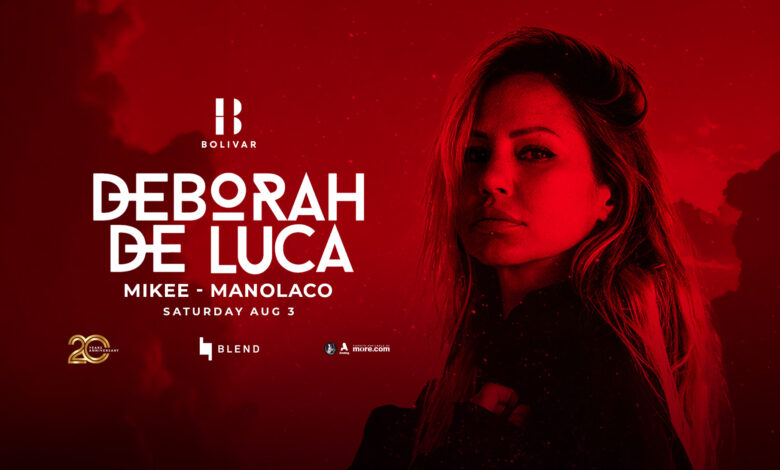 Το Σάββατο 3 Αυγούστου, το Bolivar Beach Club περήφανα καλωσορίζει ξανά την συγκλονιστική Ιταλίδα DJ, Deborah De Luca. Γνωστή για το φλογερό πάθος της και την επιβλητική παρουσία της πίσω από τα decks, η Deborah έρχεται να βάλει φωτιά στη νύχτα με τα χαρακτηριστικά δυνατά techno beats της. Μαζί της οι ταλαντούχοι DJs Mikee και Manolaco, εξασφαλίζοντας μια βραδιά γεμάτη ενέργεια.