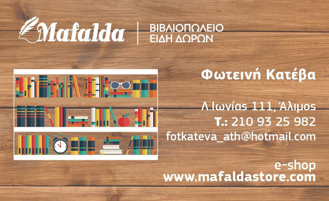 Το βιβλιοπωλείο Μafalda (Λ. Ιωνίας 111) τηρώντας όλα τα προβλεπόμενα μέτρα ,επανέρχεται με τις δράσεις του, δίνοντας χώρο και χρόνο στα παιδιά να εντάξουν και πάλι την δημιουργική τους ματιά στην καθημερινότητα τους.