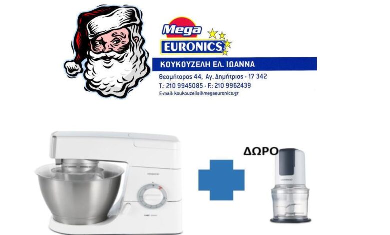 Ώρα να φτιάξουμε κουραμπιέδες και μελομακάρονα. Να τιμήσουμε αυτούς που αγαπάμε και μας αγαπούν. Θα βρείτε στο κατάστημά μας μίξερ χειρός από 19€ κουζινομηχανές από 79€. Ειδικά τo μοντέλο της KENWOOOD KM336, 800 watt και χωρητικότητας 4,6lt προσφέρεται στην Λιανική Τιμή των 289 ευρώ Μόνο και ΔΩΡΟ Multi Kenwood CH580 αξίας 37ευρώ.